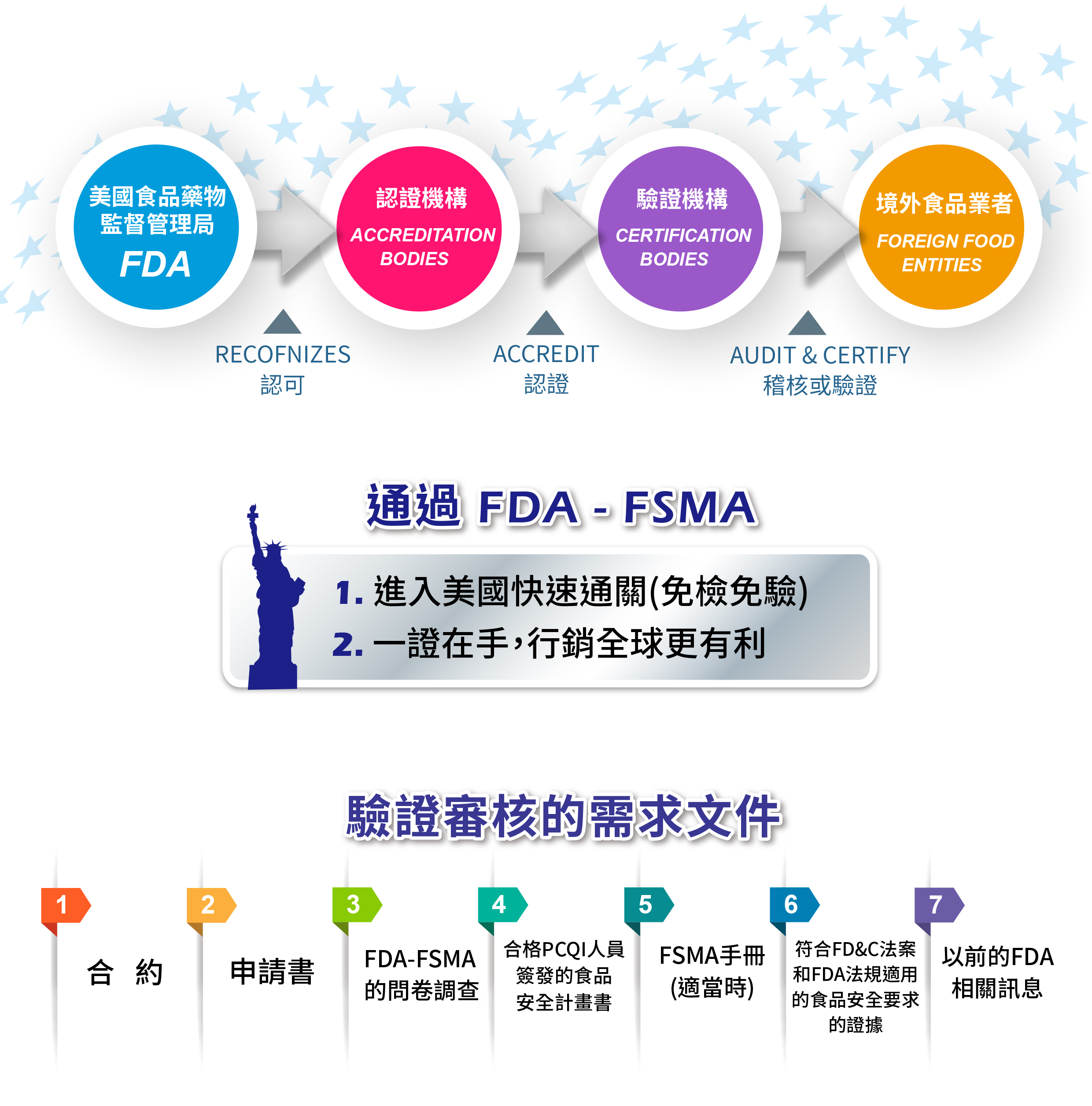 為加強對輸入美國市場食品的安全監管,自2018年10月1日起,美國食品藥物監督管理局(FDA)依據《食品安全現代化法案》(FSMA)正式實施「第三方驗證制度」。根據新規,所有出口至美國的海外食品生產商,若屬高風險類別,或參與特定進口計畫,皆須經由FDA認可的第三方機構進行查驗與核發驗證證書。