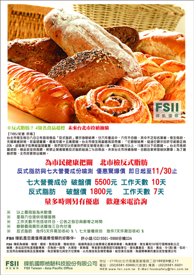| 2010-11-30 | 為市民健康把關 北市檢反式脂肪 |