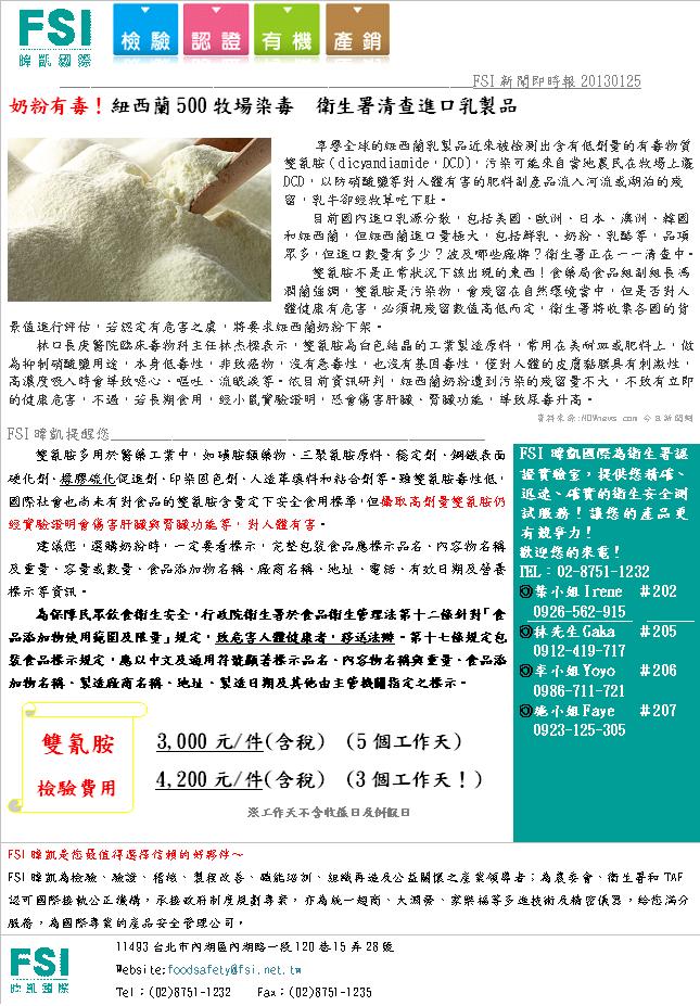 奶粉有毒!含有雙氰胺,紐西蘭500牧場染毒,衛生署清查進口乳製品