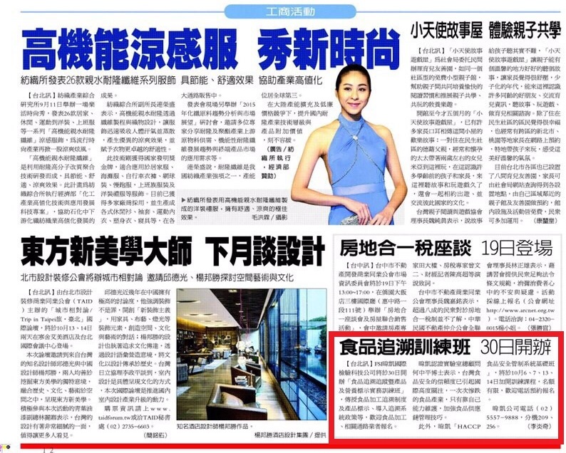 FSI暐凱於【經濟日報】食品追溯訓練班 30日開辦