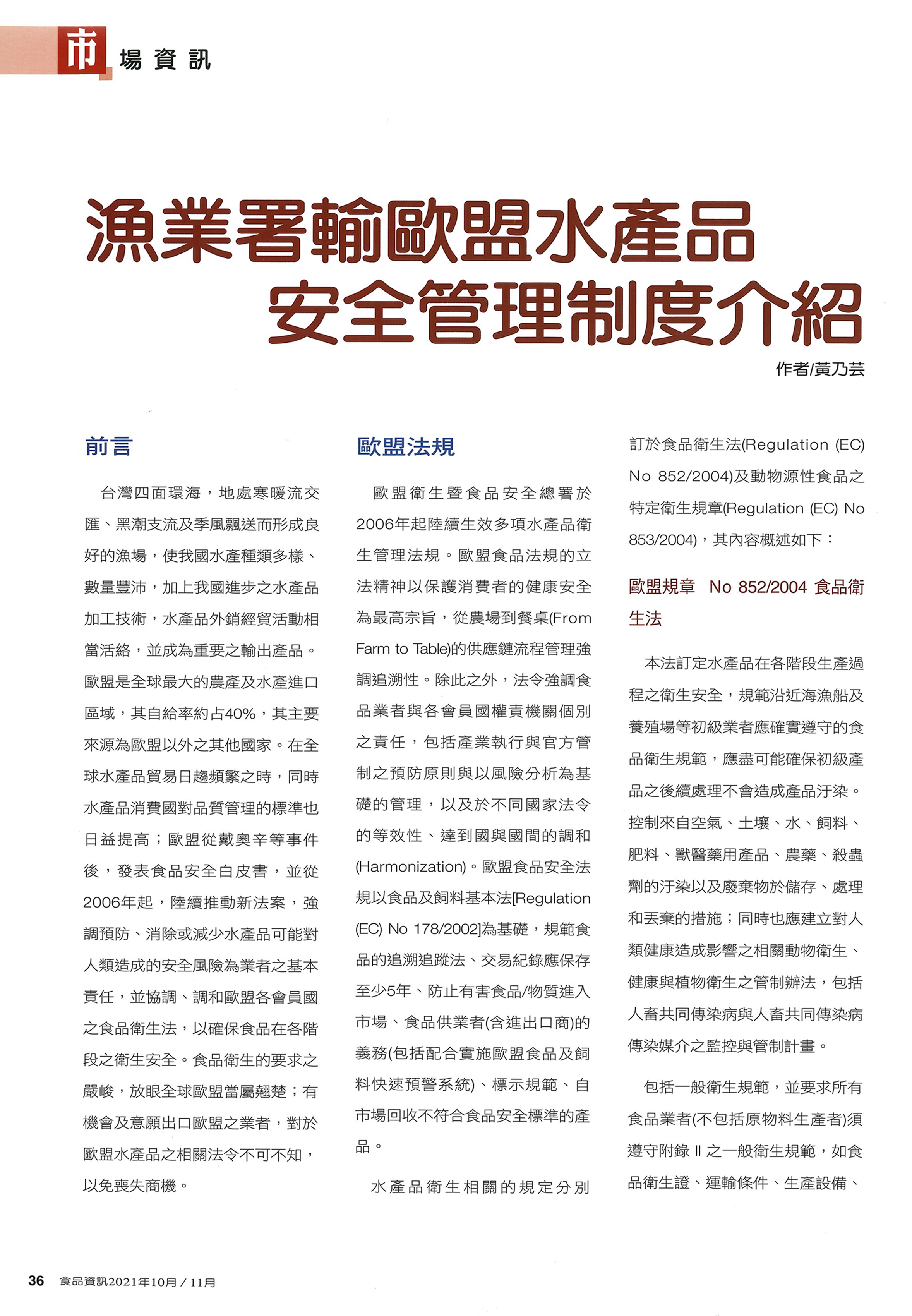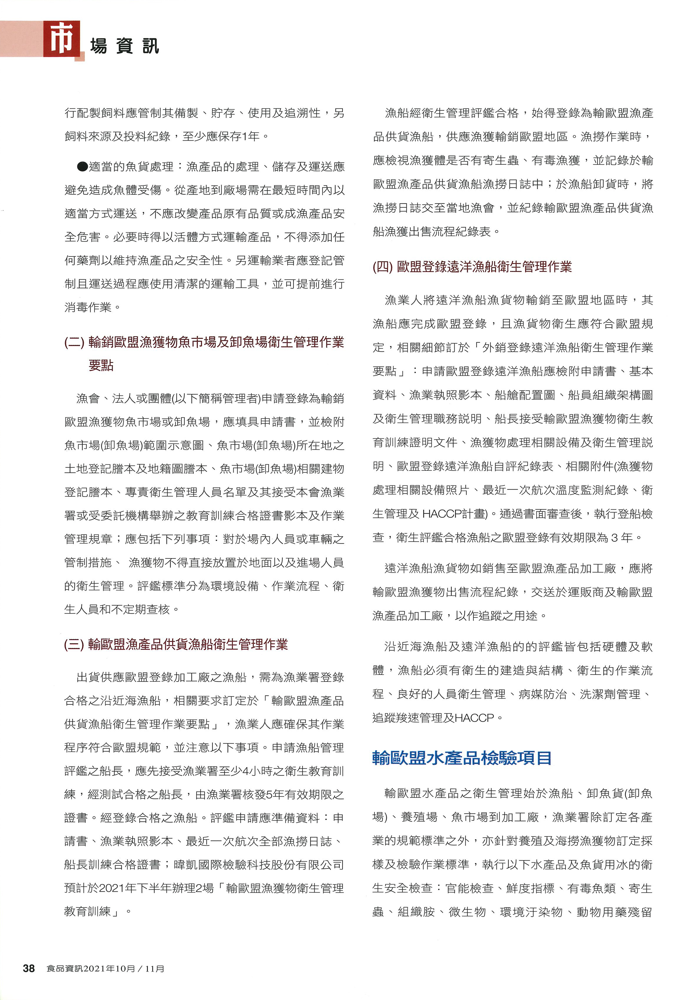 漁業署輸歐盟水產品安全管理制度介紹-食品資訊第305期