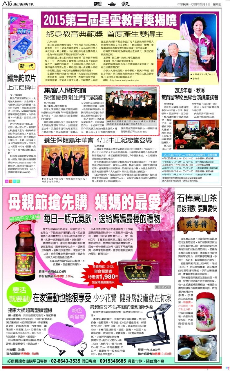 FSI暐凱【FSI優良衛生門市認證】之頒獎典禮報導於聯合報