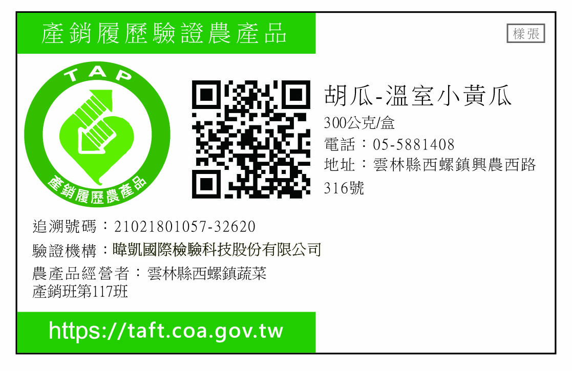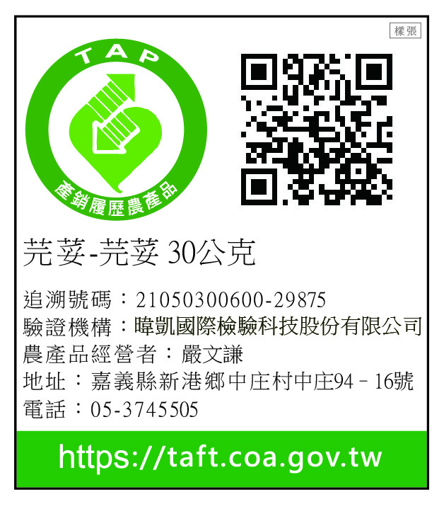 農委會公告產銷履歷農產品應標示事項之標籤範例