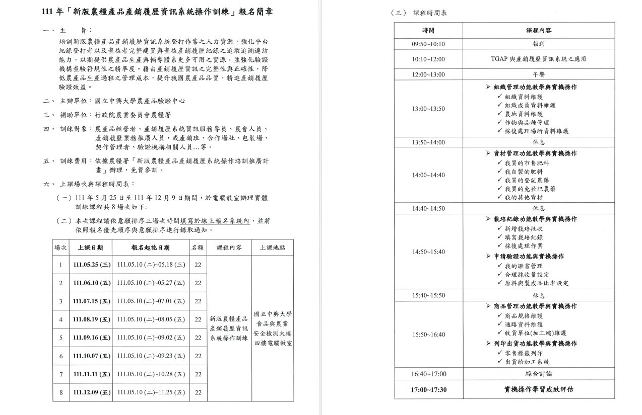 | 2022-05-19 | 產銷履歷新版農糧產品資訊系統操作訓練課程 |