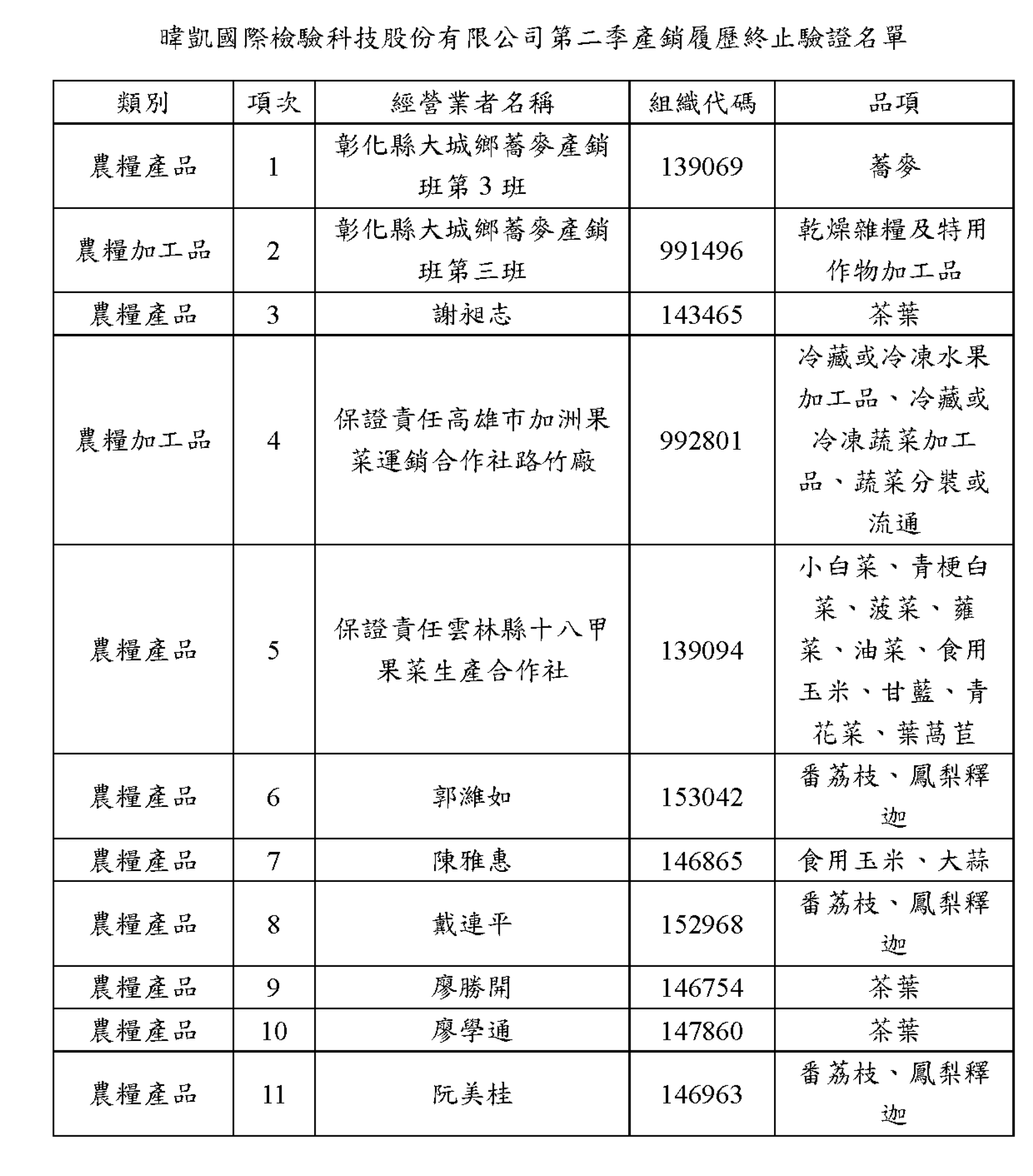 產銷履歷通過名單