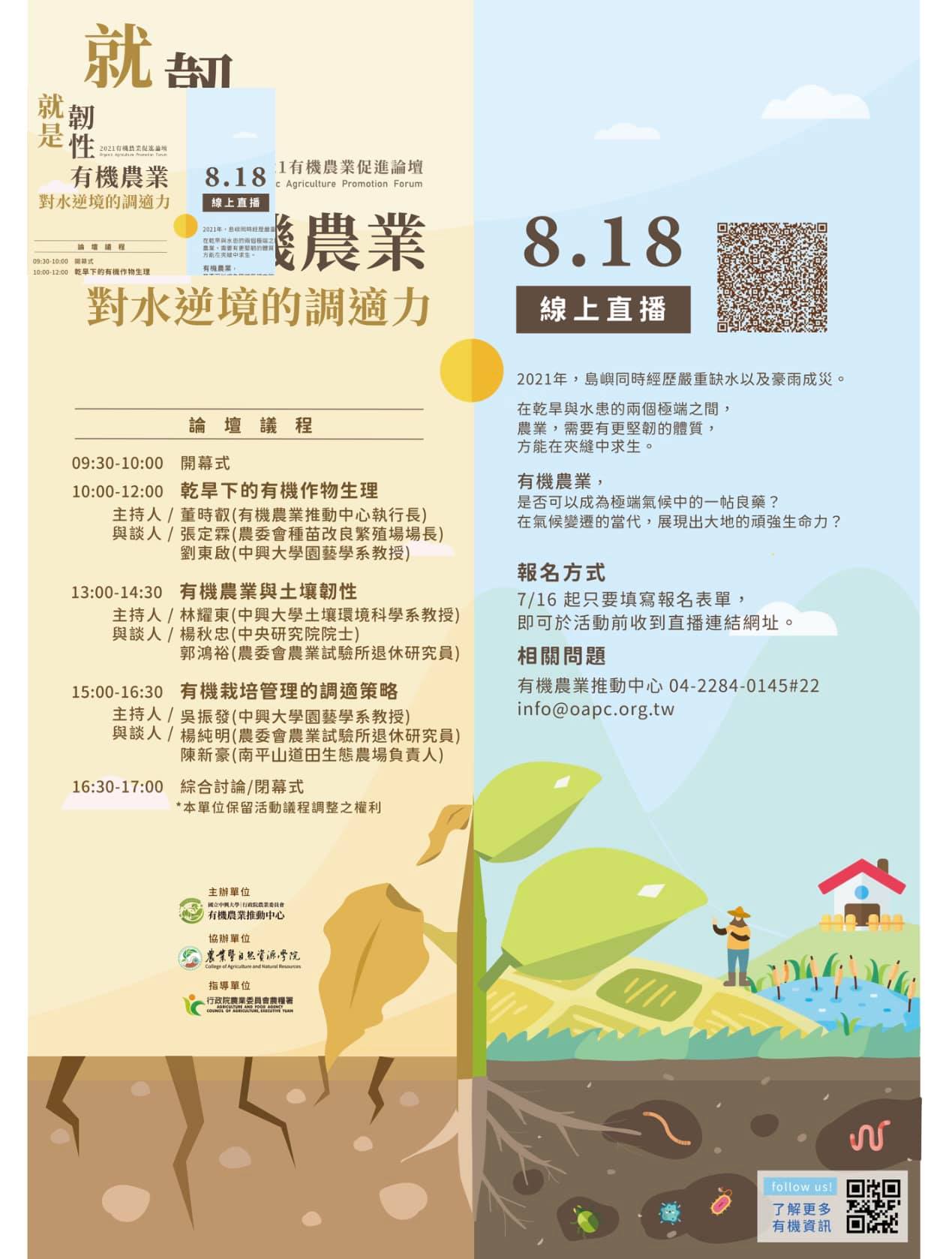| 2021-07-15 | 2021年有機農業促進論壇-【就是韌性,有機農業對水逆境的調適力】 |