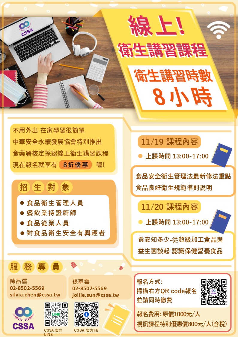 - 食藥署核定線上衛生講習課程(11/19.20)(暐凱協辦內有報名連結還可報名)