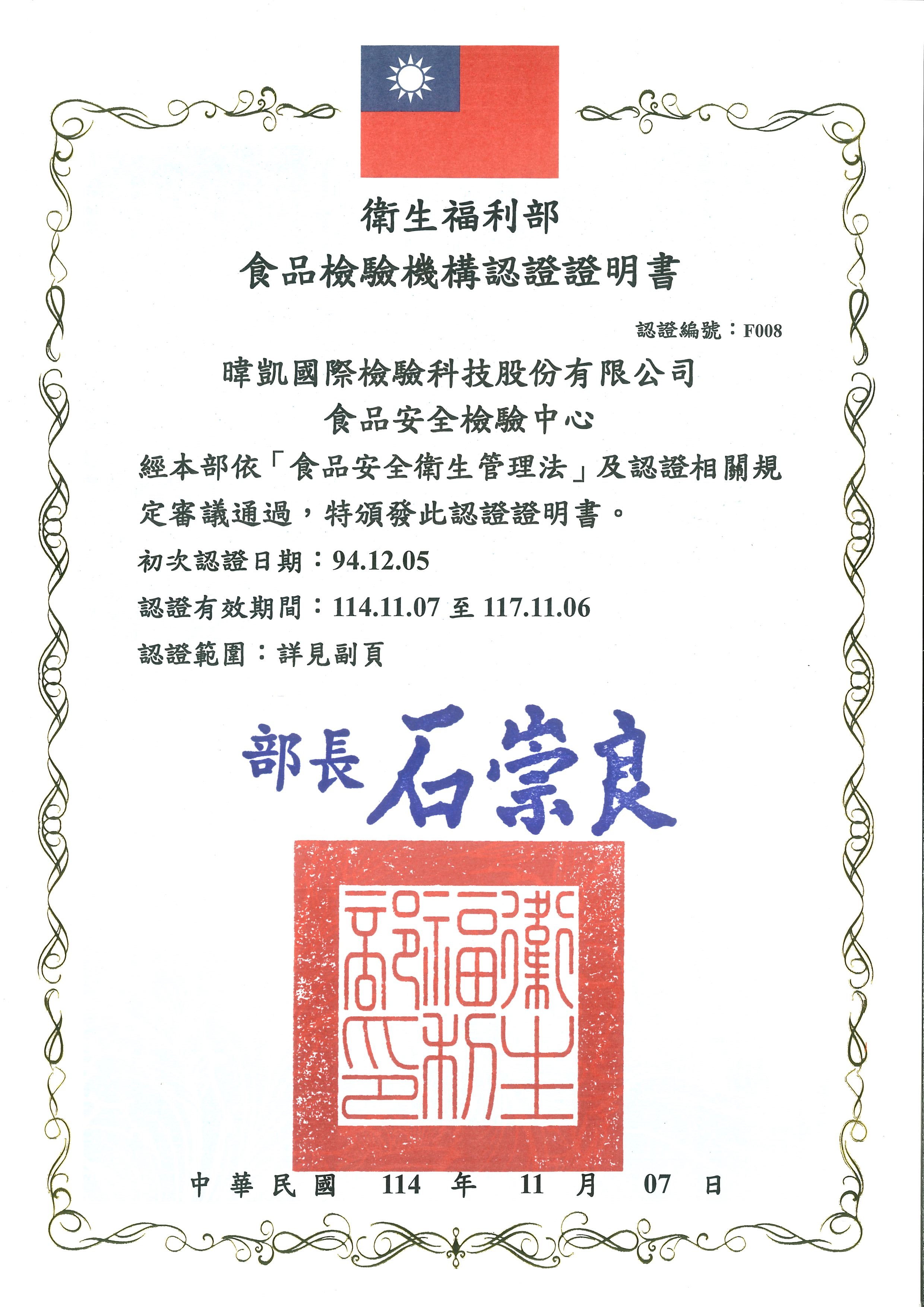 本公司榮獲衛生福利部食品藥物管理署及財團法人全國認證基金會頒發之認證證書,