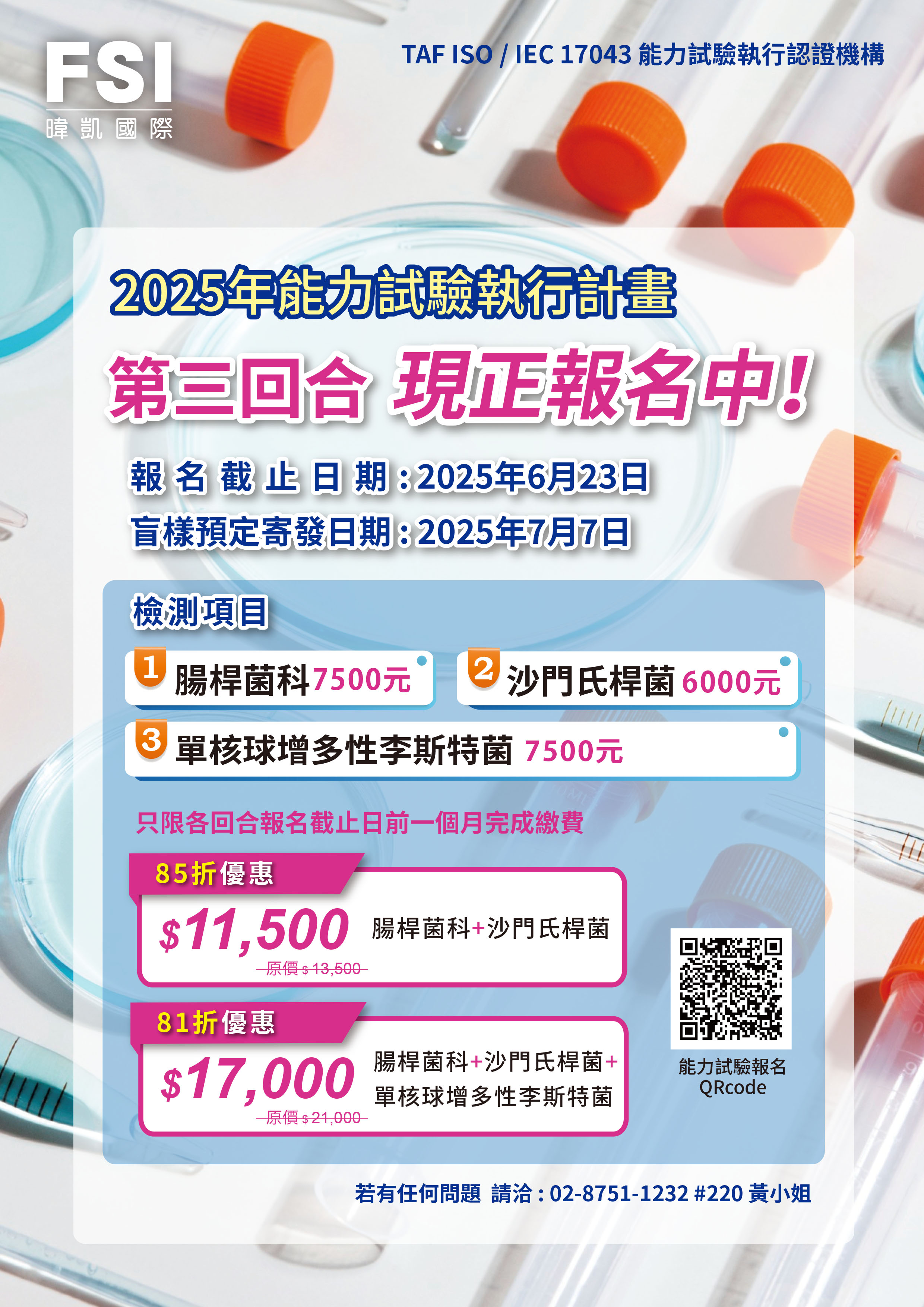2025年 能力試驗第三回合:腸桿菌科+沙門氏桿菌+單核球增多性李斯特菌 熱烈報名中!