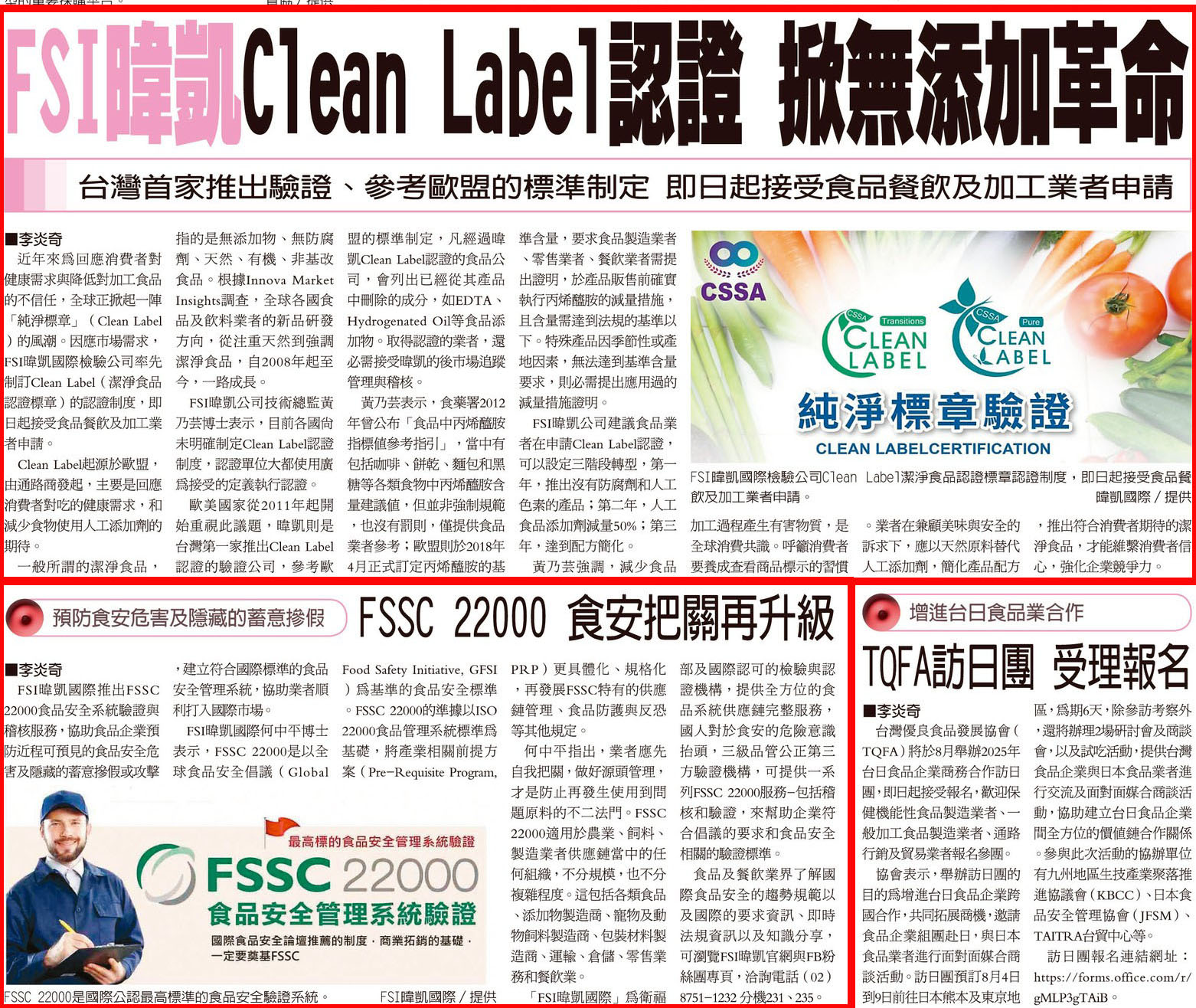 【經濟日報】暐凱 純淨標章驗證Clean Label / FSSC 22000驗證
