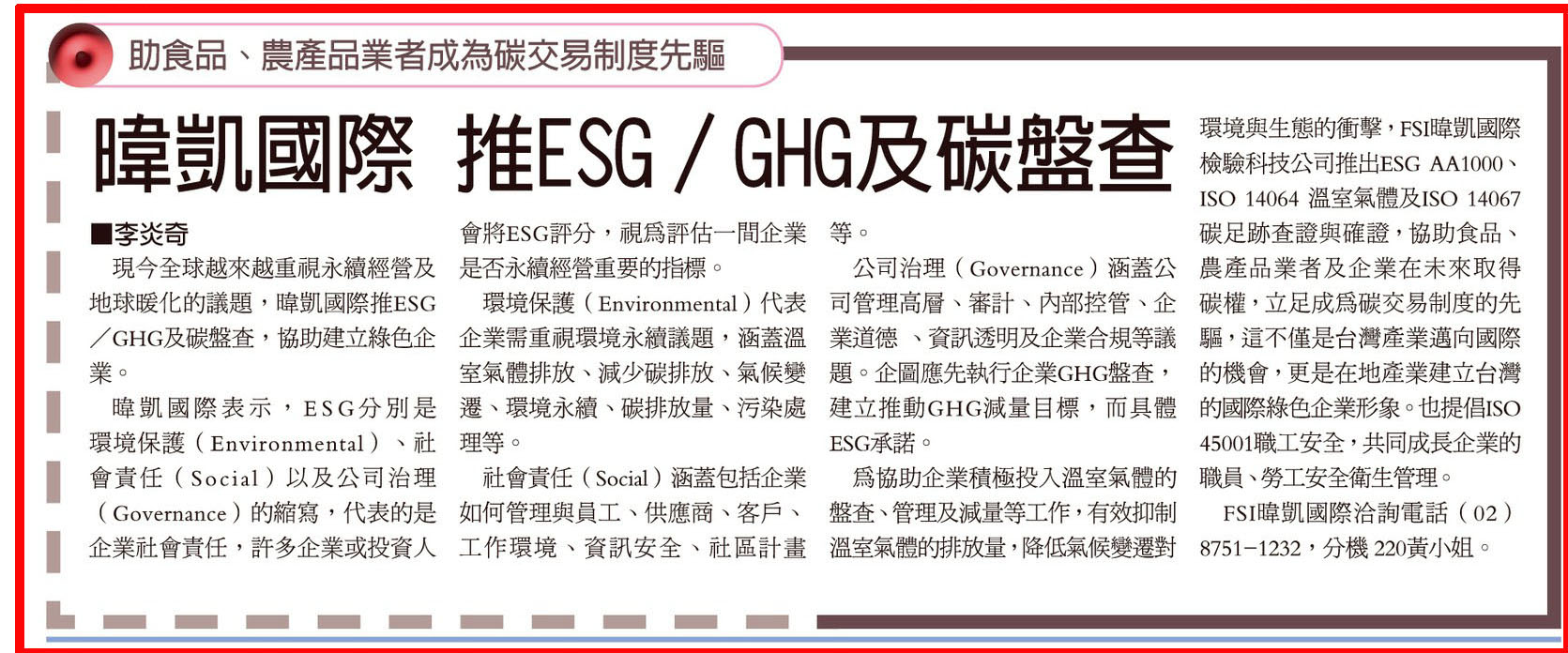 【經濟日報】暐凱國際 推ESG / GHG 及 碳盤查