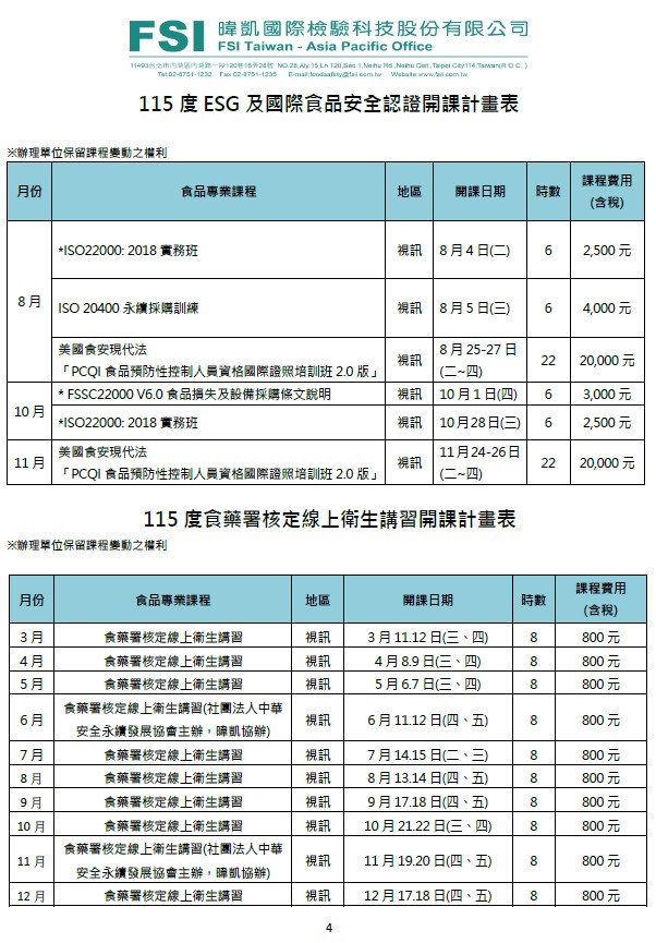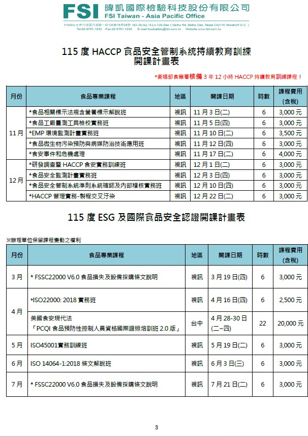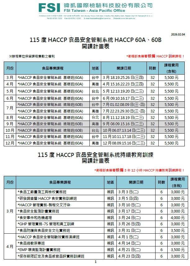 | 2026-02-10 | 【暐凱食安學院】2026年訓練教育課程開放報名囉~ |