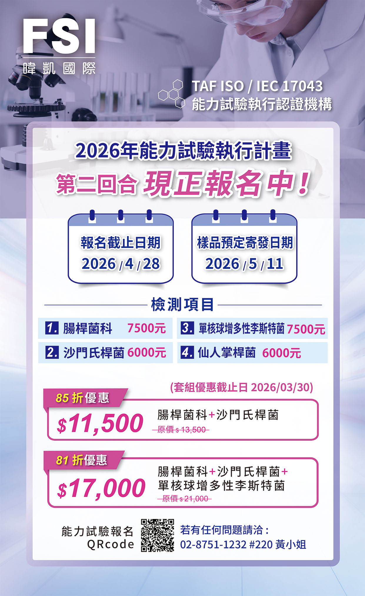 2026年 能力試驗第二回合:腸桿菌科+單核球增多性李斯特菌+沙門氏桿菌+仙人掌桿菌 熱烈報名中!