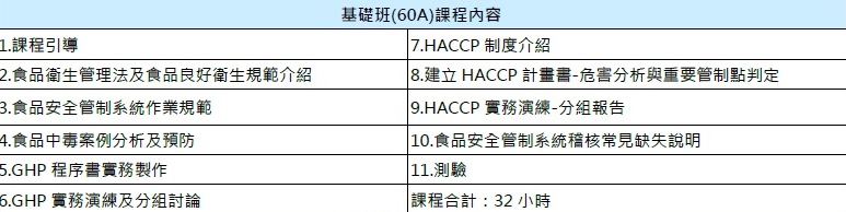 HACCP基礎班-60A (台北平日)(8/11.12.18.19)