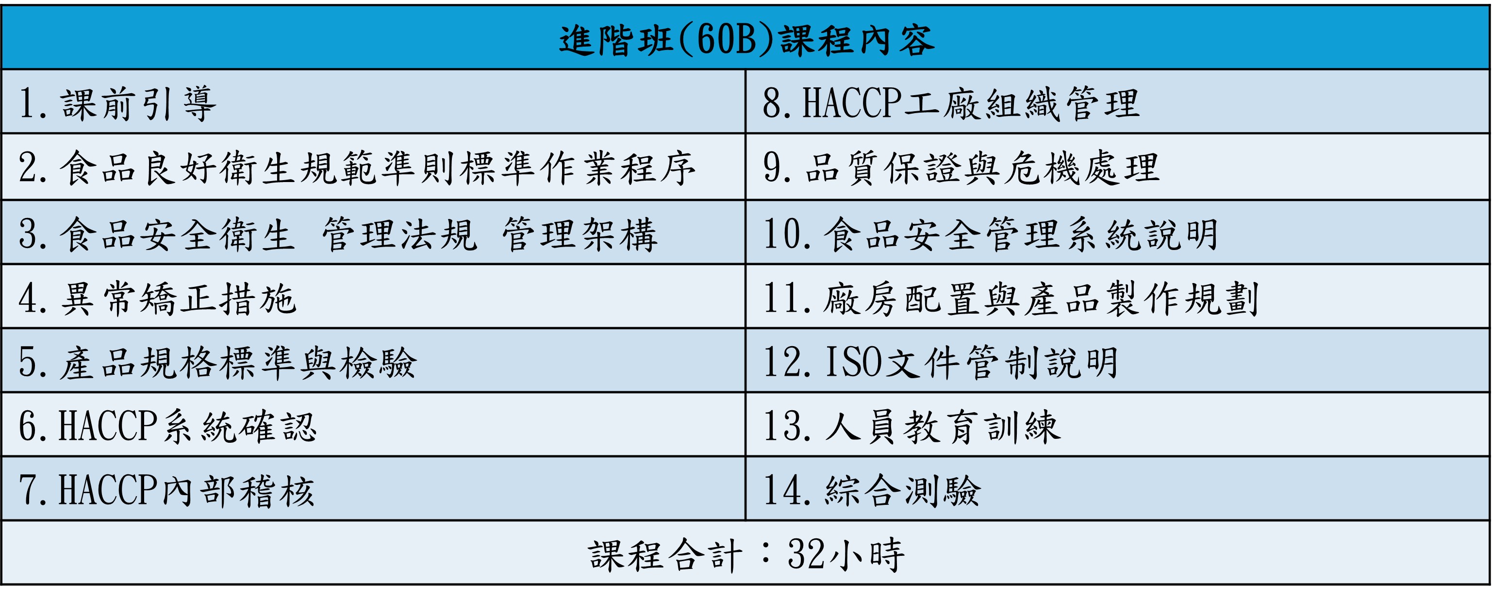 HACCP進階班-60B (高雄平日)(9/8.9.15.16)